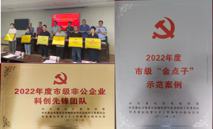 區(qū)委領(lǐng)導(dǎo)為獲評(píng)2022年度省、市級(jí)先進(jìn)典型授牌。我公司榮獲“2022年度市級(jí)非公企業(yè)科創(chuàng)先鋒團(tuán)隊(duì)”和“2022年度市級(jí)“金點(diǎn)子”示范案例”榮譽(yù)稱號(hào)。