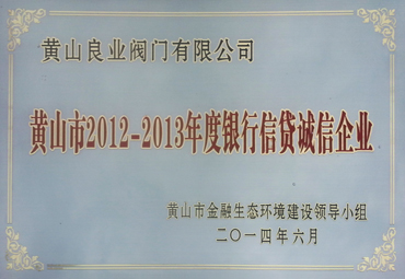 2014年6月,黃山市金融生態(tài)環(huán)境建設(shè)領(lǐng)導小組研究決定向黃山良業(yè)閥門有限公司授牌為“2012-2013年度黃山市銀行信貸誠信企業(yè)” 。